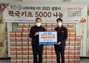 마인드플러스 (구.바른생각)은 2021년 새해를 맞아 사상구장애인복지관.사상구노인복지관,주는사랑복지재단에떡국키트5000 나눔 행사에 참여하였습니다사회의 작은 변화를 만들기 위해 따뜻한 IT기술개발과 사회에 공헌으로올바른 사회가 될 수 있도록장애인과 더불어 살아갈수있는 아름다운 사회를 만들겠습니다